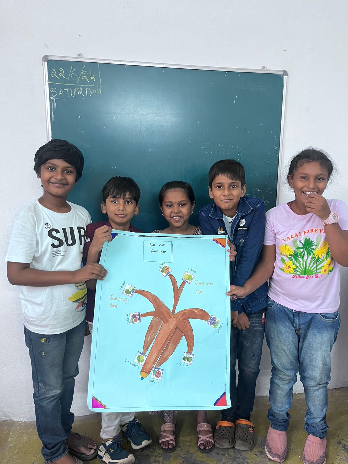The students thoroughly enjoyed participating in the activities on healthy food. They were excited to explore the vibrant colors of fruits and vegetables, and the “Eat the Rainbow” theme sparked curiosity and enthusiasm. Sorting foods by color, creating rainbow plates, and discovering the science behind nutrients turned learning into a fun and interactive experience. The hands-on approach not only helped them understand the importance of a balanced diet but also encouraged teamwork, creativity, and healthy habits. Their smiles and active involvement showed that learning through activity can truly be both educational and enjoyable!